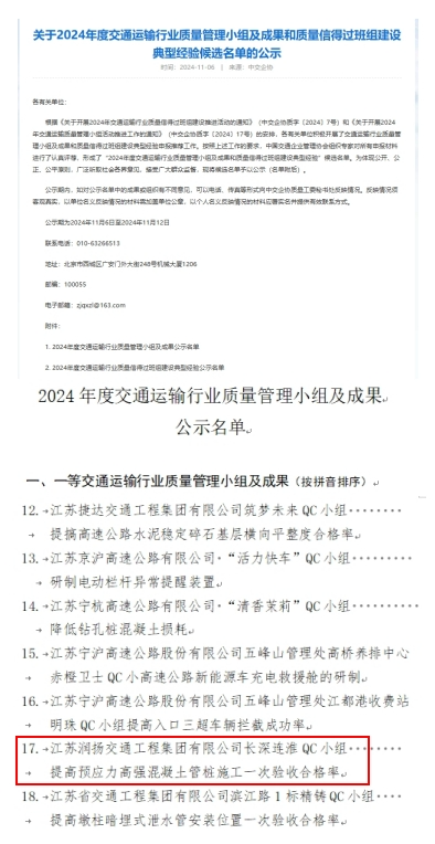 喜報(bào)|集團(tuán)QC成果榮獲2024年度全國(guó)交通運(yùn)輸行業(yè)質(zhì)量管理小組及成果一等獎(jiǎng)